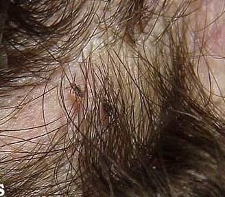 阴虱聚居在阴部及会阴毛上。具有一定的游移性,阴毛部位及其附近瘙痒,搔抓引起抓痕,血痂或继发脓疱疮、毛囊炎等感染,有时被咬处见黄豆大或指大青斑,即刚灰色色素性小斑点,一般不超过1cm直径,这种斑点可能是皮肤对阴虱涎液的过敏反应,也有人认为是由于阴虱吸血时,唾液进入血液而使血红蛋白变色,虱咬处微量出血,该处变为青斑。杀灭阴虱后,青斑可继续存在数日。在毛囊口可找到阴虱,毛干处可找到铁锈色虱卵。