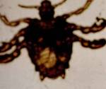 (2)皮疹在阴虱叮咬处常有微孔(肉眼看不见),局部发红,有小红斑点,其上有血痂;微孔处约经5天,局部产生过敏反应,常隆起出现丘疹。因搔抓常出现感染,见脓疱、渗液、结痂。